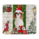 Kavalier Kung Hund sitta utanför det dekorerade hemmet med julkrans, Julgran är en julklapp för hundälskare i perfekt.
