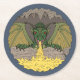 En rödögd grönt drakar i sitt grova underjordiska luder sprider eld i Richard H. Fays ursprungliga fantasi-illustration.