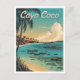 En levande och nostalgisk bild av Cayo Coco, Kuba, ett tropiskt paradis som är känt för dess pristina vita sandstränder, turkos vatten och lush mangroves. Konstruktionen fångar öns idylliska skönhet, med dess utspridda stränder, lyxområden och kristallklara Karibiska havet. I en vintage stil frammanar konstverket Cayo Cocos avslappnande atmosfär och naturplöjd, och uppmanar tittarna att utforska sina stilla stränder, olika vilda djur och levande marina liv.