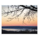 Den här fototryckningen visar en bild av bran från backe söder om Cayuga Sjö, den längsta av centrala New Yorks glaciära Sjöar. Staden Ithaca ligger i den södra delen av staden. Det är perfekten ställe som ser denna hisnande solnedgång. Himlar glöms med briljant färg av orange, rosa, gult, grädde, blått och violett. Silhouetted backe i östrans strand. Ett lågt ljugande gren dominerar förgrunden och ramar denna vackra scen.