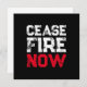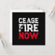 Cease Fire Nu, vitt rött, svart, grå typografi mot krig hälsningskort. Vit och röd, tryckt fet typografi på svart bakgrund. Dessa kort fungerade också bra för ursäkter, jag är ledsen uttryck.