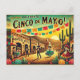 Här är vintage-stil-vykort för resor till Cinco de Mayo, med en färgstark mexikansk byscen med stengator, festive papel picado-baners och livliga marknadsstånd. 🎉 🇲 ✨ Utformningen har ett varmt, festligt färg med återtypografi som lyder "Celebrate Cinco de Mayo!".