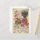 Blommigt Vår-kort med fågel, luftballong, rosett band, kuvert och stjärnor