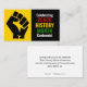 Motivational BLACK HISTORY MONTH CENTENNIAL business card showing black raised fist graphic against a rich yellow background on the left, and CELEBRATING BLACK HISTORY MONTH CENTENNIAL in bold white, red, yellow, green typography set against a rich black background on the right. On the reverse there is a CUSTOMIZABLE greeting which you can personalize with your own wording. A great way to keep in touch over the Black History Month season—especially during this landmark centenary year. Other varieties of BHM cards, invitations, clothing and decor are available.