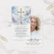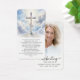 This memorial prayer card features a Christian cross with a radiant sky and cloud background, symbolizing faith, hope and eternal peace. The opposite side highlights a personalized photo alongside the phrase CELEBRATING THE LIFE OF NAME and dates, creating a heartfelt tribute for a Celebration of Life event, funeral service, memorial service, visitation or wake. Included is an editable "The Lord’s Prayer," offering familiar words of comfort and reflection for family and friends during moments of remembrance (or change to another prayer, bible verse, poem or custom remembrance message). Its small and portable size (3.5x2") makes this keepsake card convenient to carry as a reminder of their life and spirit. Personalization makes these cards unique.