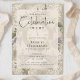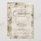 Elegant "Celebration of Life" Invitation featuring a serene vintage background of vintage clock, french bridge and details of ivory lace and lavander flowers. On the back a purple butterfly and pretty arrangement of peonies a lavander.
