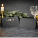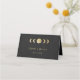 Guide guests to their seats with this elegant celestial place card featuring a black background and faux gold Art Deco detailing. A row of moon phases crowns the design, symbolizing harmony and celebration under the stars. Personalize with names, table numbers, and event details to match your wedding or formal dinner suite. The faux gold accents offer a sophisticated look without metallic printing.