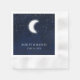 Celestial bröllop-cocktail-napkin. Vattentärsblå natten himmel med stjärnor och måne.