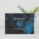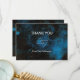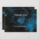 Unik kosmisk astrologi-inspirerad blå minimalistisk Bröllop-tackkort med överlappande trianglar, som representerar jämställda partners, på en stjärnande atmosfärisk galaxbakgrund. Information om vit teckenstil kan anpassas helt på båda sidor. Tydlig elegans för det moderna paret som vill framföra sitt tack.