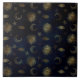 Celestial Blue Guld Sol Måne Stars Kakelplatta