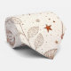 Elegant celestial botanical pattern necktie featuring moons, stars, planets, mystical eyes, and delicate leafy branches in a minimal black and cream style. Ideal for astrology lovers, spiritual seekers, nature enthusiasts, and anyone who loves boho celestial aesthetics.