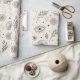 Elegant celestial botanical pattern wrapping paper featuring moons, stars, planets, mystical eyes, and delicate leafy branches in a minimal black and cream style. Ideal for astrology lovers, spiritual seekers, nature enthusiasts, and anyone who loves boho celestial aesthetics.