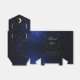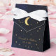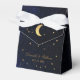 En blå guldbröllopspresentförpackning för ett celestialt bröllopstema, med guldstjärnor på mörkblå natthimmelsbakgrund.