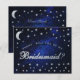Det har guldfärgad gul text på marinblå himmel bakgrund, med falska guldstjärnor och måne. Ordet Brudtärna på framsidan (som är i falsk guld folie) och meddelandet på baksidan är skrivna i en elegant kalligrafisk stil, den välvda texten "[Namn] vill du vara min" ovanför ordet Brudtärna i små bokstäver.