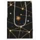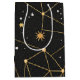 Mystical constellation pattern gift bag featuring golden stars, celestial lines, and dreamy clouds across a dark night sky background. Ideal for astrology lovers, stargazers, astronomy fans, spiritual seekers, and anyone who loves cosmic and celestial style.