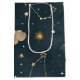 Mystical constellation pattern gift bag featuring golden stars, celestial lines, and dreamy clouds across a dark night sky background. Ideal for astrology lovers, stargazers, astronomy fans, spiritual seekers, and anyone who loves cosmic and celestial style.