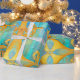 A luminous holiday design featuring golden filigree over cool blue and turquoise glass textures. Elegant and ethereal, perfect for Christmas gifts, winter weddings, or festive décor that shines with calm sophistication.