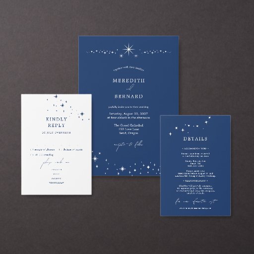 Invite your guests to a night of romance and starlight with this Celestial Elegant Wedding QR Code Website Details Enclosure Card from the Celestial Elegant Wedding Collection. Featuring a deep navy blue background adorned with twinkling stars and refined typography, this modern celestial design is perfect for couples who love a minimalist yet luxurious aesthetic. Easily personalize with your names, wedding date, and venue details for a fully customized touch. Ideal for celestial weddings, winter celebrations, or elegant evening receptions. Pair it with matching RSVP cards, programs, menus, and signage for a cohesive wedding suite.