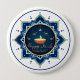 Celestial Flame - Diwali Mandala Glow-knapp A radiant diya flimrar i mitten av ett geometriskt mandala, omgivet av delikat mönster i guld, grönt och blått. Utformningen vänder sig mot en djup indigoduk och frammanar Diwalis ljus i helig - symboliserar hopp, harmoni och brans triumf. Varje inslag glänser med festlig elegans och bjuder in firande och eftertanke.
