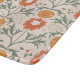 A seamless pattern featuring stylized sun faces, blooming orange flowers, curling clouds, and leafy green vines on soft beige background.