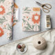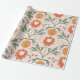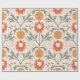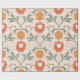 A seamless pattern featuring stylized sun faces, blooming orange flowers, curling clouds, and leafy green vines on soft beige background.