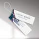 De här elegant galaxy business hang-märkrna har en jewelton-galaxi gräns med faux guld kant. Lägg till ditt företag namn och tagline på framsidan av med en ren vit bakgrund med modern typografi och färgfull galaxi gräns kant. Utformningen har en elegant natt himmel gräns med guld. Ditt företag adress och kontaktinformation, inklusive social-media och -ikoner samt QR-kod på baksidan. Perfekt för smycken- eller tillbehörsföretag och matchar övriga förpackningar i Galaxy-samlingen.
