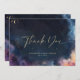 Show your appreciation in stellar style with the Celestial Gift Midnight Blue Stars Cosmic Galaxy Thank You Card. Featuring a deep midnight blue background illuminated by shimmering digital gold accents (not real foil), this card is perfect for expressing gratitude at a wedding, special event, or any cosmic celebration. The celestial elements, including stars and cosmic motifs, create a dreamy atmosphere, making it a versatile option for thank you cards related to any occasion, from weddings to parties or even birthdays with a galaxy or astrology theme. Its elegant design adds a touch of magic to your heartfelt thanks, leaving a lasting impression on your recipients.