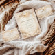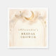 A dreamy celestial design featuring a glowing golden crescent moon set within an elegant arched frame. Soft luminous clouds, delicate stardust sparkles, and warm champagne tones create a romantic, ethereal atmosphere. The subtle marble-like background and refined gold detailing add depth and sophistication while maintaining a soft, airy glow. Perfect for a modern bride who loves celestial magic with an elevated, timeless aesthetic.