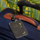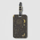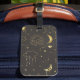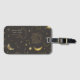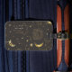 Celestiala gyllene stjärnor, måne och konstellationer på svart bakgrund. Cute bagagetagg för dina resor.