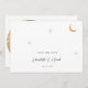 En modern kallelseinbjudan till ett lågprisbröllop har en enkel och elegant utformning. Den innehåller en guld-folie måne och stjärnor som är försiktigt gnistra och som är uppställda mot en ren bakgrund. Inbjudan användor klassisk serif-typografi, som ger en traditionell och formell kontakt med sitt vackra och tydliga stil.