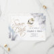 Celestial guld måne och stjärnor på vattenfärgsbakgrund. Spara det datum som kan anpassas med ditt namn på ett bra sätt. Klicka på knappen "anpassa" om du vill ändra teckensnittet stil, färg och storlekt.