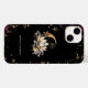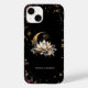Celestial guld sol och måne, lotus och stjärnor på en svart bakgrund.