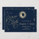 Celestial guld sol och måne och stjärnor på marinblå bakgrund. Spara det datum som kan anpassas med ditt namn på ett bra sätt. Klicka på knappen "anpassa" om du vill ändra teckensnittet stil, färg och storlekt.
