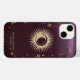 Celestial guld sol och måne och stjärnor på burgundisk bakgrund.