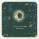 Celestial Guld Sol och Måne Stars Grönt Underlägg Papper Kvadrat