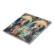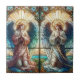 Även om den här teckningen liknar nedfläckad glas är den faktiskt en keramisk platta som är designad för att imitera det traditionella glasverkets timelösa skönhet. Biet skisserar två nigande änglar i bön, deras händer klappade devotion. Den lämnat ängeln bär en blommande rosa och röd rob, kompletterad med vingar i blått och grönt, medan ängeln på högerna bryts ned i en serenblått och vitt robe med liknande färgad vingar. Bakom dem svävar ett strålande solbränna mönster i varmt, gudomligt ljus. Nedan växer ett bildskärmslandskap ut, med en vattenavrinning genom lush greenery. Även om det kanske inte är äkta glas av nedfläckad, skapar plattans invecklade hantverk och omsorgsfull använda av färg en häpnadsväckande illusion. De ingående glasrutorna och texturerna avslutar att den ljusreflekterande effekten av ljus som passerar genom glas framkallar, vilket gör att denna keramiska grafik kan ha samma andlig och konstnärliga dragningskraft.