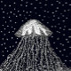 Celestial Jellyfish Dot Art Dreamscape Aesthetic.A mesmerizing dot artwork featuring a delicate jellyfish floating gracefully against a deep blue background. This design blends sealife elegance with a celestial dreamscape aesthetic, creating a calming and almost ethereal visual experience. The intricate dotted details give the jellyfish a glowing, cosmic feel, inspired by ocean depths and starry skies.