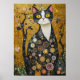 Den här bilden har en fantastisk katt som återges i det konstnärliga stil som påminner om Gustav Klimt. Katten, med sin slående gult ögon, vit och svart päls och intrikat, snurrande mönster på sin kropp, exuderar en regal och mystisk aura. Bakgrunden är mycket detaljerad med gyllene nyanser, organiska former och motiv för blommigten, som sömlöst blandas in i kattens figur, som är försedd med ornat cirkulärt mönster och delikata försköningar. Den totala effekten är en mesmarsande fusion av naturskönhet och lyxiös, prydnadsdesign.