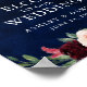 Välkomna poster till Celestial Bröllop. Vattentärsblå natten himlar med stjärnor och måne. Blommigt för vattenfärg Burgundy Blue Rosa. Greenery Eucalyptus Löv.