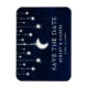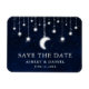 Celestial Save the Date förlovning Notification Magnet. Vattentärsblå natten himlar med stjärnor och måne. Bokeh string ljus.