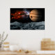 Digitalt kollage med ett sci-fi-landskap i måne, med en färgstark nebuli och en gasjätte i stjärnan himlar.