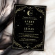 Gå in i en värld av fantasi med vår kelestial Midnight Himmel Black Guld bröllopsinbjudan. Denna lyxiga inbjudan visar en fantastisk gulddesign mot en djup svart bakgrund, som framkallar magin hos en stjärnbelyst midnatt himmel. Med en crescerande måne och strålande stjärnor utlovar den en elegans och en känslosam kväll, perfekt för ert oförglömliga mystiska bröllop.