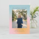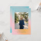 Denna inbjudan till examensfest har en mjuk pastellgradientbakgrund i blått, rosa och persika med ett stort foto av examen i centrum och alla festsdetaljer i ren blå text ovan och nedan.