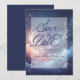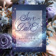 Vi presenterar det här fantastiska bröllopet "Celestial Dreams" som sparar datumkortet. Kortet är skrivet med kärlek och celestial magi och har en halvmåne på framsidan, omgiven av en mesmarsande blå stjärnhimmel och visp av drömmande moln, tillsammans med Spara datumet i elegant skript. Anpassa din dag och din hälsningsresa väntar!