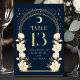 Höj evenemanget med elegans! De här bord-korten i Art nouveau har gyllene bågar, skuggande stjärnor och känsliga vita blommor som ställs in mot en marin blå bakgrund - en tidslassedesign för bröllop, middagar eller firande. Lägg till en liten vintage till din bord-dekorator i dag! Observera att guld på den här produkten INTE är äkta folie, utan tryckt platt. Objekt skrivs ut exakt som de visas på skärm när du lägger till i kundvagnen, så att du anpassar och lägger till varje bordsnummer som du behöver i kundvagnen individuellt.