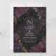 Dramatisk och celestial, den här midnatt lila gothic bröllopsinbjudan innehåller djupa plommon blommigtar, guld kosmisk accent och en mörkens starträlåda. Perfekt för par att planera en moody, romantisk och annan världslig firande med en aning celestial magi. Fullständigt anpassade med dina bröllop-uppgifter.