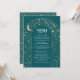 Uppskattat teal- och guld-menykort för bröllop
