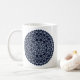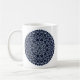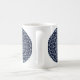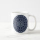 En snöre-liknande koncentrisk spiral mandala i ljusblått med ljusblå och guld stjärnliknande punkter som spänner över lagrar ger en roligt, en design som påminner om en stjärnnatt himlar. Det finns andra mugg färg och stilar, inklusive resemuggar och stutar.