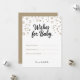 Ta med lite stjärnstoft till din babydusch med det berömda "Önskemål för Baby"-kortet, designat för drömma, moderna föräldrar som kärlek subtila magi. Med en tvinnad ljusinspirerad övertoningsbakgrund i mjuk , lavender och dammigig blått, är den försedd med minimalistiska stjärnor, måne och konstellationer i faux guld-folieeffekten. Det handskrivna huvudet och de tankfulla instruktionerna gör detta kort till en känslig hjärtefråga och ett hjärtligt ögonblick för dina gäster. Perfekt för astrologiinspirerade teman, drömmande gender-neutralt-duschar eller boho cosmic-vibes. Vackert, modernt och skrivet i stjärnorna.