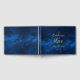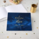 Det här berömda temat gäst bok har en vacker bakgrund av ett blått område med stjärnor och elegant guld-bokstäver. Lägg till egna uppgifter med hjälp av den angivna mallen på menyn Anpassa. Detta är en del av en svit för bröllop som innehåller inbjudan, kuvertet och andra väsentliga delar.